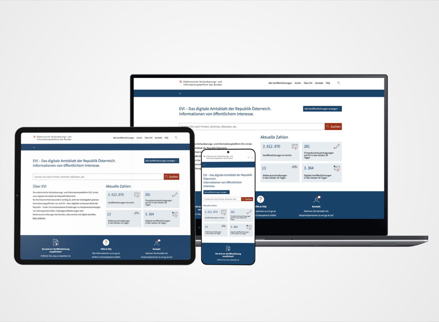 EVI ist die elektronische Verlautbarungs- und Informationsplattform der Republik Österreich, die 2023 das gedruckte Amtsblatt zur Wiener Zeitung abgelöst hat. Die Plattform wurde in enger Zusammenarbeit mit den Nutzer:innen entwickelt und bietet Bürger:innen einen einfachen und kostenfreien Zugang zu über 400.000 amtlichen und wirtschaftlichen Veröffentlichungen und Informationen.